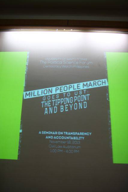 Photos from Million People March Goes To UST: The Tipping Point And Beyond last November 18, 2013 at the Civil Law Auditorium, University of Sto. Tomas.